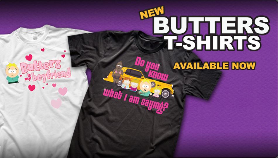 In honor of “Butters’ Bottom Bitch”, we’ve got some pimp-tastic new shirts up in the Shop. Become Butters boyfriend, or even his bottom bitch, with these stylin’ new t-shirts.