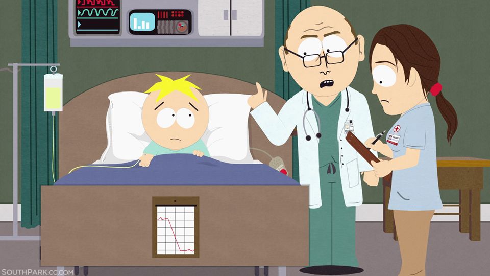 Butters ends up in the hospital after being stabbed by a hooker — part of this Wednesday’s all-new episode “Grounded Vindaloop”…