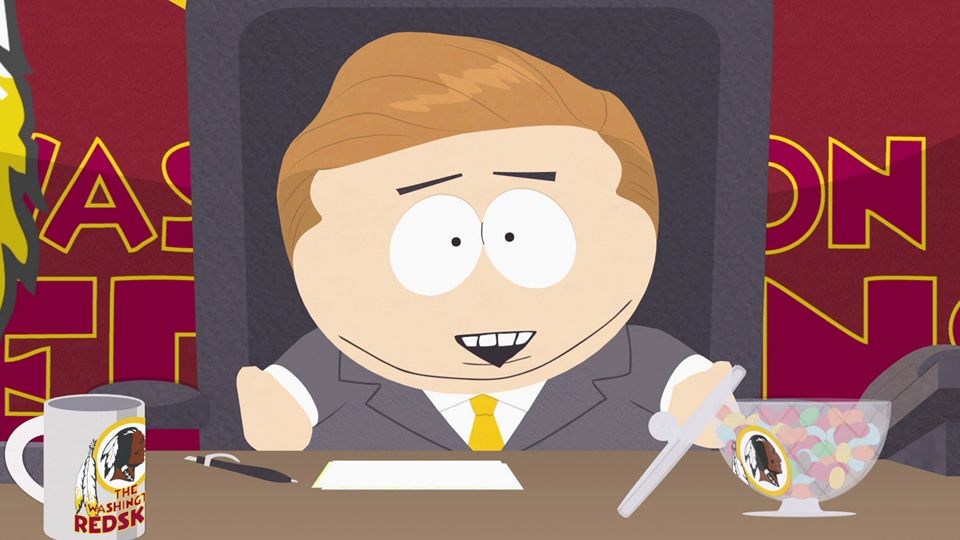 After Cartman and the boys name their new company, The Washington Redskins, they just sit back and watch the funding roll in. The head coach of the Washington Redskins football team demands that they change the name but Cartman digs in his heels. The Washington Redskins may never mean the same thing ever again…