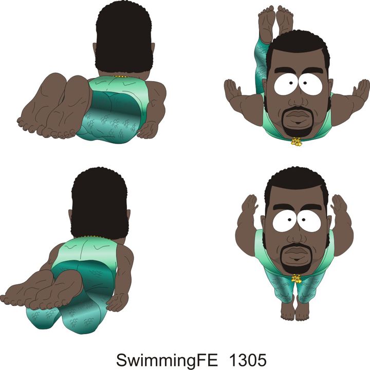 • A number of specialty poses were needed to be made to create this scene with Kanye swimming.