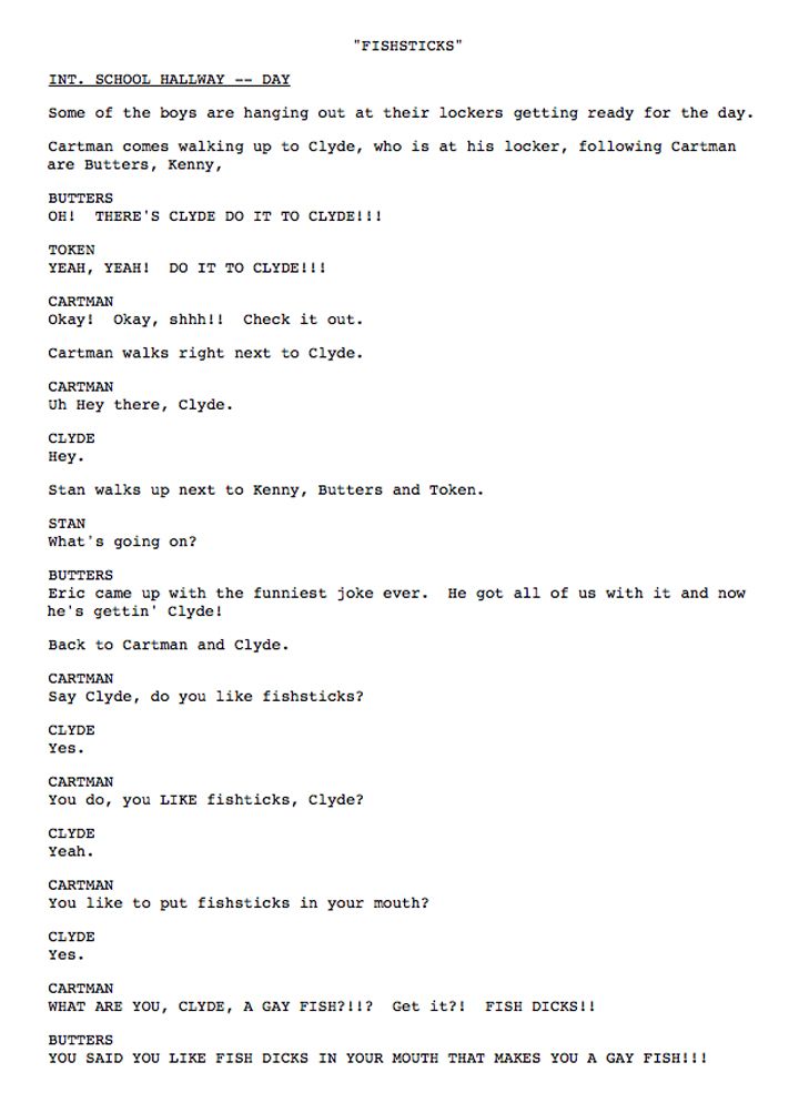 • From Matt: “On the Writers Retreat, we typed in ‘fish dicks’ to see if anybody made that stupid joke before. And NO ONE had.”