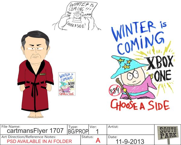 – Props like Cartman’s hand-drawn flyer are created by our art department.