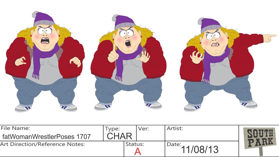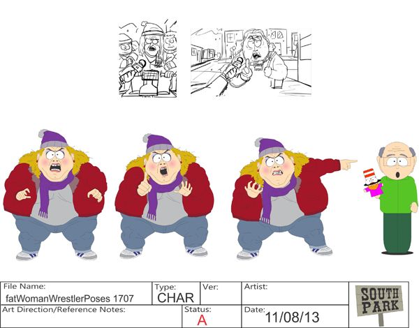 – Animators used old-school WWE wrestler poses as inspiration for the movements during this fat woman’s speech.