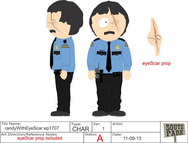– Yep, that’s some real production art used while designing the “Mall Cop” look for Randy.